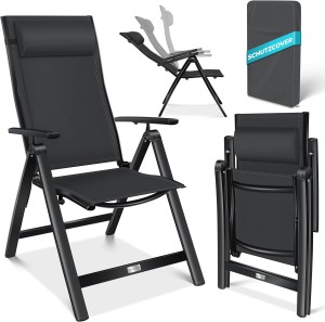 Składane krzesło ogrodowe KESSER® z aluminiową ramą i oddychającym materiałem tekstylnym to komfort i trwałość na lata. Wyposażone w 7-stopniową regulację oparcia, wygodną poduszkę pod głowę i antypoślizgowe nóżki, zapewnia idealny relaks w ogrodzie, na balkonie czy tarasie.
