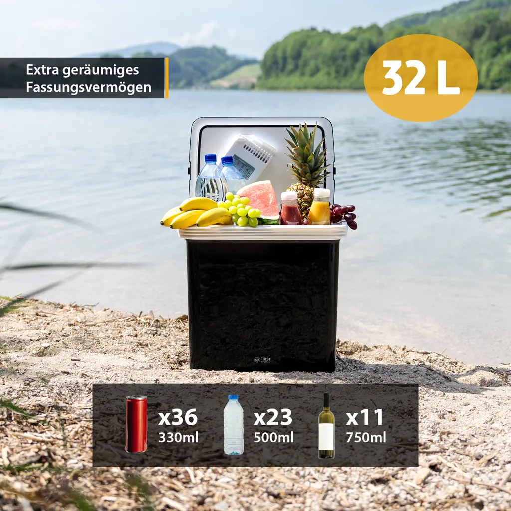 Pojemna lodówka turystyczna 32L z funkcją chłodzenia i grzania – idealna na podróże, działkę i wakacje.