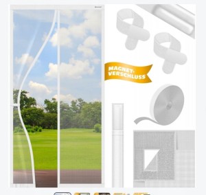 Praktyczna moskitiera KESSER® 100 × 220 cm w kolorze białym. Chroni wnętrze przed komarami i owadami, a jednocześnie zapewnia świeże powietrze. Łatwe przechodzenie dzięki magnetycznemu zamknięciu, szybki montaż bez wiercenia.