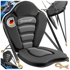 Siedzisko kajakowe KESSER to wygodne, składane oparcie do deski SUP, kajaka lub kanu. Wykonane z wodoodpornego neoprenu i poliestru, wyposażone w cztery regulowane pasy i metalowe karabińczyki ze stali nierdzewnej. Gwarantuje komfort, stabilność i bezpieczeństwo podczas pływania.