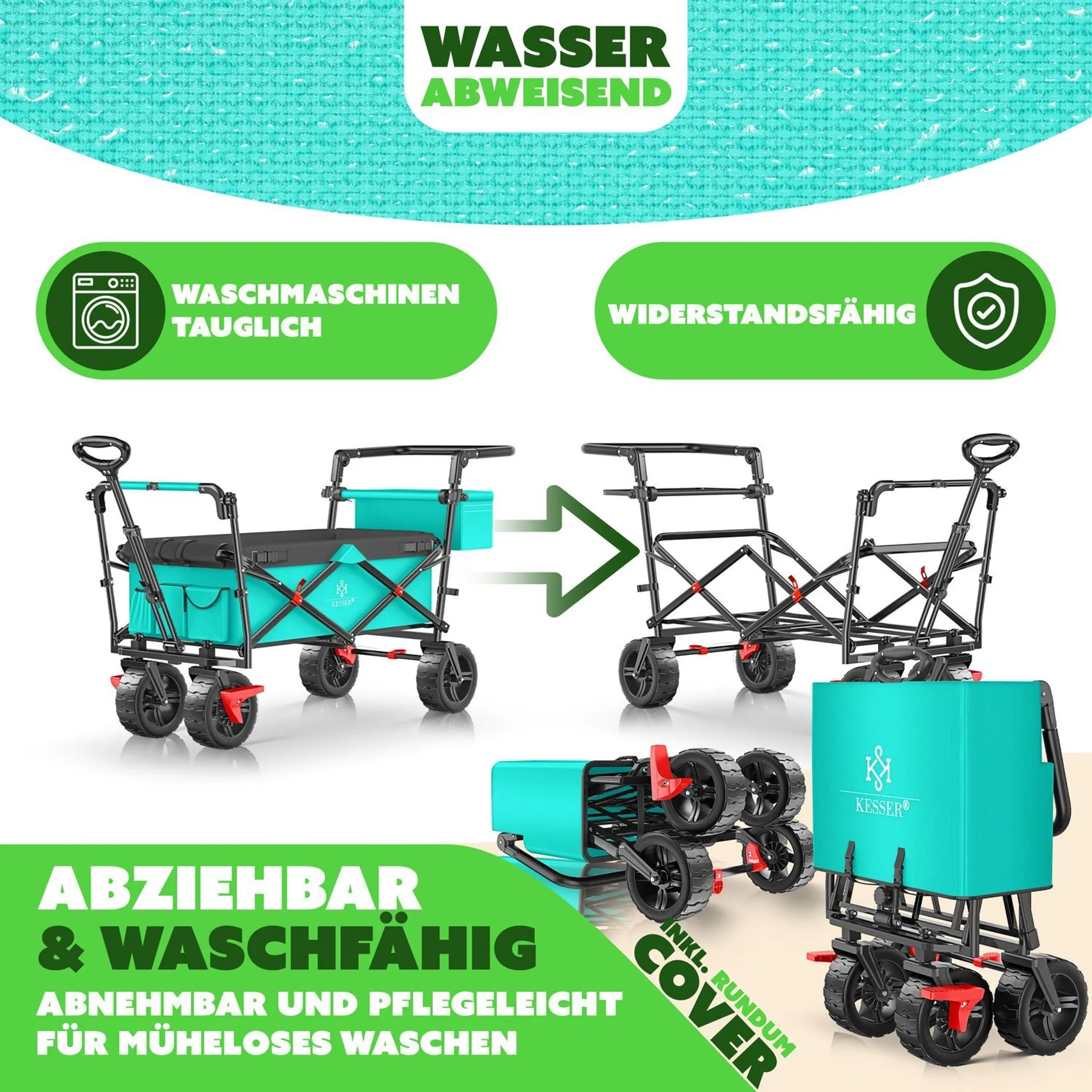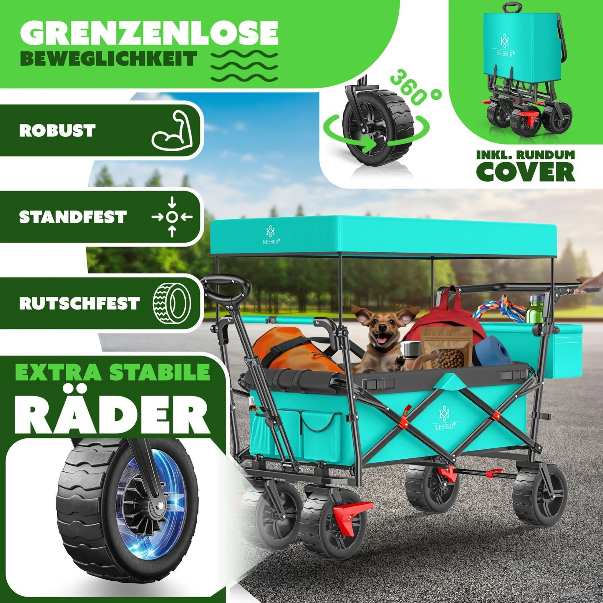 Składany wózek transportowy GT-9000 z daszkiem UV, torbą XXL i kołami 360°, do 80 kg