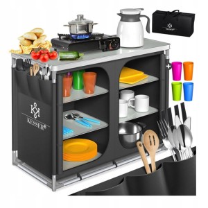Postaw na wygodę i porządek podczas biwaków z szafką kempingową KESSER 100×79×50 cm. To praktyczna kuchnia turystyczna, która łączy kompaktowe wymiary po złożeniu z dużą przestrzenią roboczą i miejscem do przechowywania.