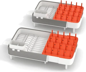Różne sekcje przeznaczone są na talerze, miski, garnki i kubki. W zestawie znajduje się również wyjmowany uchwyt na sztućce oraz uchwyt na kubki, który może być używany również osobno w zlewie. Pionowe pręty zapobiegają przewracaniu się wyższych naczyń.