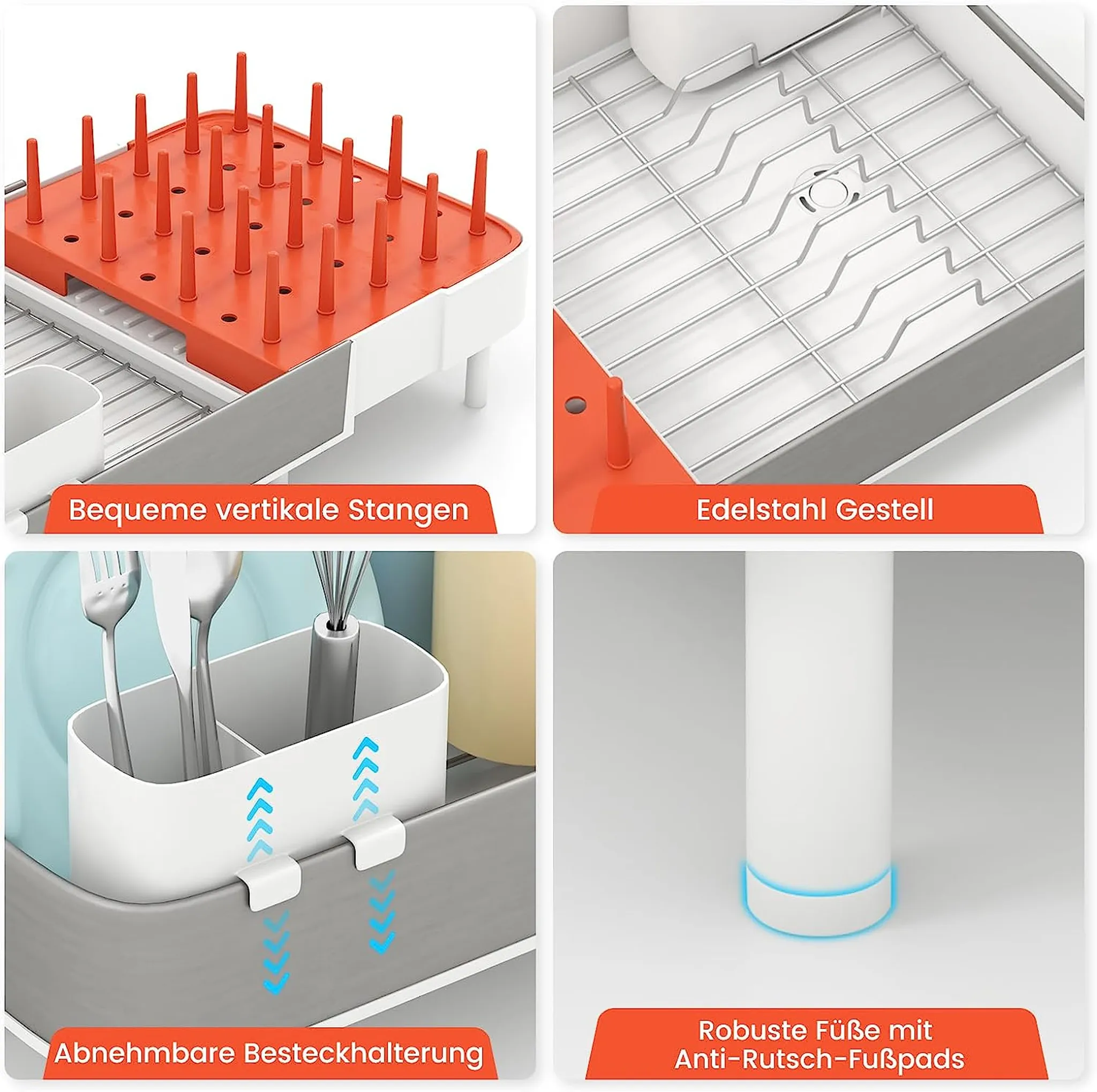 Wysuwany stojak na naczynia z automatycznym odpływem stal nierdzewna biało-pomarańczowy