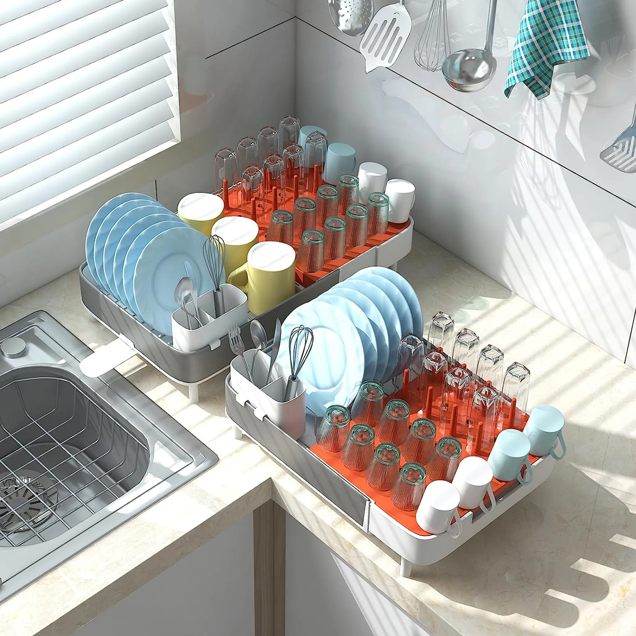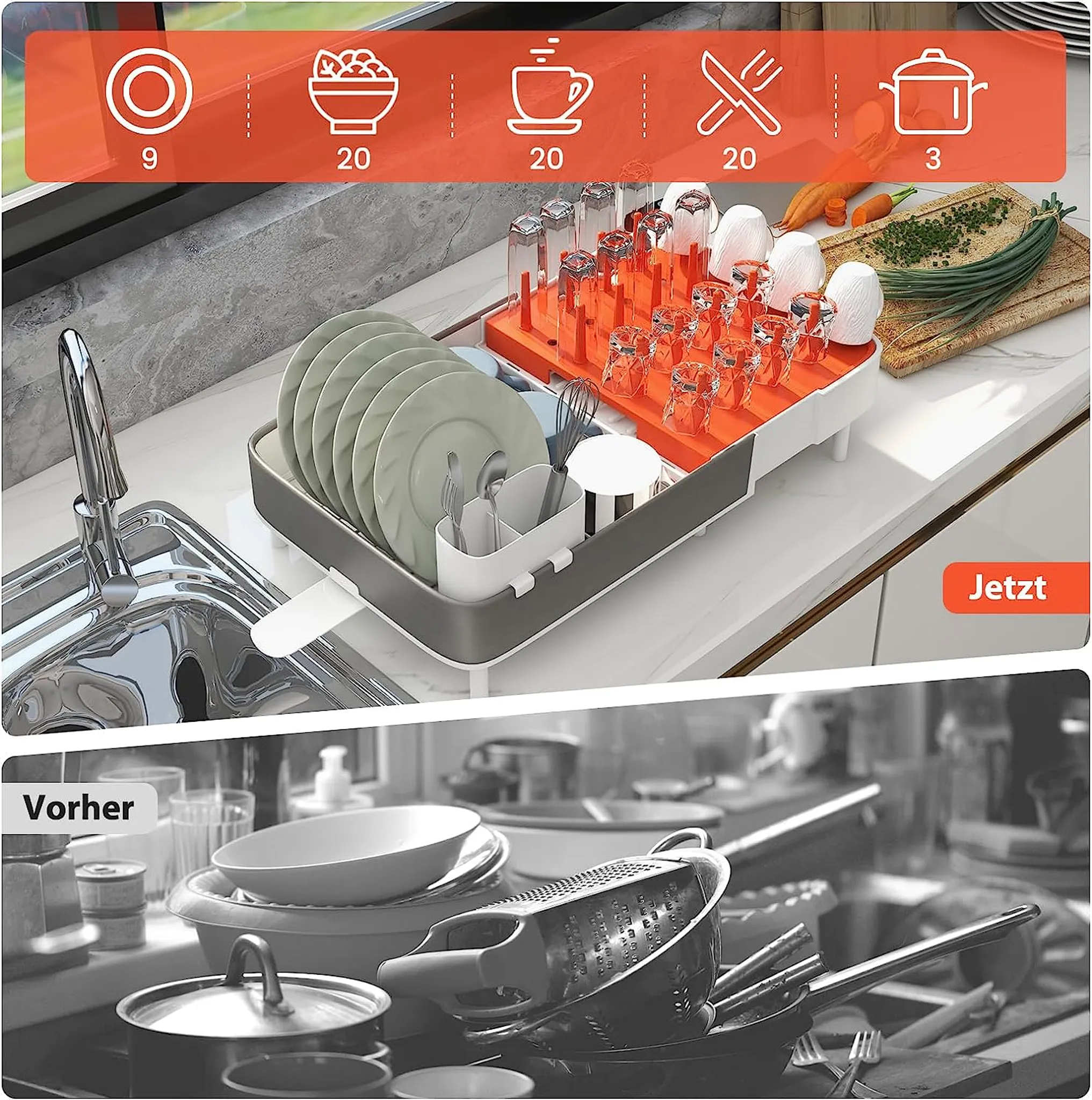 Zadbaj o porządek na kuchennym blacie dzięki nowoczesnemu wysuwanemu stojakowi na naczynia z automatycznym odpływem! Ten praktyczny i pojemny ociekacz pozwoli Ci zorganizować przestrzeń i efektywnie suszyć naczynia każdego dnia.